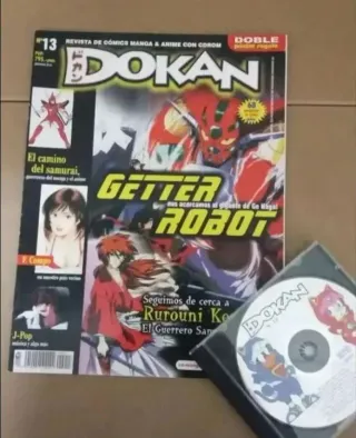 PRECIO NO NEGOCIABLE - SOLO hago envíos <br> Revista DOKAN de manga/ánime - número 13 (Junio de 1999) con CD-ROM (especial Gatos Samurai, Getter Robot de Go Nagai. Roruni Kenshin. El camino del samurai. F. Compo.). Editorial Ares