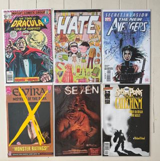 La mayoría como nuevos. Seven (Se7en) 2006 #7 Wrath - Zenescope - 10 €. New Avengers (2005 1st Series) #39 - 3,50 €. Hate #2 (Peter Bagge) - 6,50 €. Steampunk Catechism (2000) Prologue - 2,50 €. Tomb of Dracula (1972 1st Series) #55 - 6 €. Fell (2005) #8 - 3 €. Batman (1940) #666 - 30 €. Wormwood Gentleman Corpse (2006 ) #6 - retailer incentive - 10€. Wormwood Gentleman Corpse (2006 ) #5 - 3 €. Hellspawn (2000) #8 - 5 €. Justice League Unlimited (2004) #43 - 45 €.