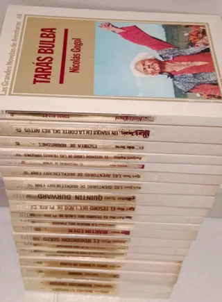 21 números de la colección de novelas de literatura universal (Julio Verne, Daniel Defoë, Mark Twain, Nicolas Gógol, etc.). 3 € la unidad, 55 € todos los ejemplares. Huckleberry Finn, Escuelas Vírgenes, Los Robinsones, Tarás Bulba, Las aventuras de Tom Sawyer, Ivanhoe, La llamada de la selva, Robinson Crusoë