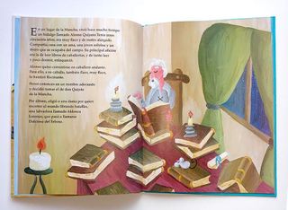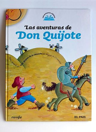 Las aventuras de Don Quijote, una adaptación para niños del clásico de D. Miguel de Cervantes publicado por El Pais. 25 páginas a color, tapas duras, Tamaño: 23 x 30 x 1 cm. Edit. SANTILLANA