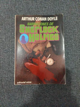 Este es un libro de tapa blanda titulado "Narraciones de Sherlock Holmes" de Arthur Conan Doyle, publicado por Editorial Mitre. El autor es Sir Arthur Conan Doyle, quien creó el icónico personaje de Sherlock Holmes. El libro es una colección de relatos cortos, un formato que popularizó al detective por primera vez en 1891 en The Strand Magazine. Las historias de Sherlock Holmes son narradas por su colega, el Dr. Watson, y se centran en la deducción lógica y la observación. La edición pertenece a la Editorial Mitre.