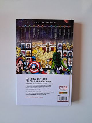 Comic marvel en su edición integral que contiene toda la obra El guantelete del infinito, de los autores Jim Starlin, George Pérez y Ron Lim.