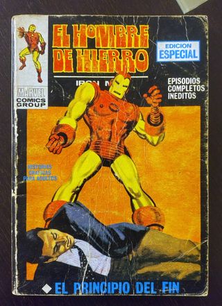 Cómic clásico de Marvel España de los años 70. Una pieza de colección ideal para completar la mítica etapa de Vértice o para amantes de las primeras ediciones de Iron Man en nuestro país. ✅ ESTADO: Con signos evidentes de desgaste por el paso del tiempo (ver fotos detalladas de lomo y portadas), pero COMPLETO con todas sus páginas y perfectamente legible. ✅ EDICIÓN: Formato taco original, tal cual se vendía en los quioscos de la época. Entrega en mano en Gijón o envío muy protegido para asegurar su estado. #Marvel #IronMan #Vertice #HombreDeHierro #ComicAntiguo #Tebeo #Años70 #Coleccionismo #Vintage #StanLee