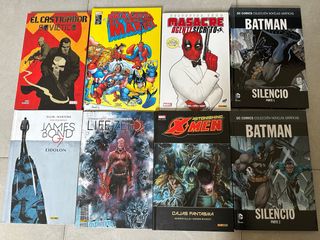 Lote de 8 comics en muy buen estado. Batman silencio parte 1 y 2 Astonishing x-men 5 cajas fantasma Life zero El castigador sovietico Masacre agente secreto James bond eidolon Sergio aragones masacra el universo marvel