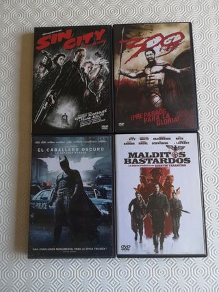 Lote 4 películas DVD: Malditos Bastados + Batman El Caballero Oscuro : La Leyenda Renace + Sin City + 300. Entrega en mano y también envío. Tags: batman, joker, dc comics, marvel, películas, dvd, vhs, leonidas, espartanos, batalla termopilas, cine acción, cine aventuras, oferta, oportunidad, liquidación, chollo, regalo.