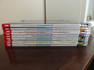 Los 10 tomos en tapa blanda del regreso de los 4 Fantásticos al universo Marvel de la mano de Dan Slott. Todos en buen estado tras una lectura. Posibilidad de añadir el tomo del evento Imperio que transcurre durante el tomo 6 de la saga y guarda ciertas conexiones con la etapa.
