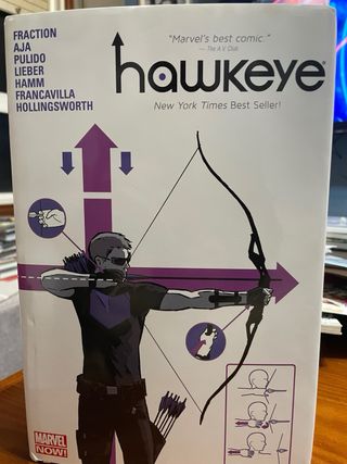 Lote de Hawkeye HC Vol.1 y Vol.2 (Oversized Hardcover) de Matt Fraction, David Aja y otros. Edición original Marvel NOW! en inglés, formato grande con sobrecubierta. Vol.1 recoge Hawkeye (2012) #1–11 + Young Avengers Presents #6; Vol.2 incluye Hawkeye #12–22 + Annual #1, es decir, toda la etapa Fraction/Aja.