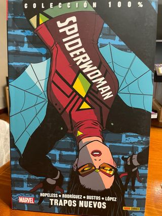 Lote de Spiderwoman (Colección 100% Marvel, Panini) tomos 2 y 3: Trapos nuevos + Cambio de marcha. Etapa moderna de Jessica Drew con guion de Dennis Hopeless y el arte espectacular de Javier Rodríguez (muy recomendable si te gusta el estilo “pop” y dinámico).