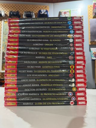 Pack con 20 tomos de la colección Marvel Héroes de Panini Comics, en tapa dura y en un formato excelente para leer. 6€ Tomo, NO SE REBAJA. NO SE SEPARA. Hulk: Los perros de la guerra Los 4 Fantásticos: En busca de Galactus | Imaginautas | Vuelta a los orígenes Iron Man: La 2a guerra de las armaduras El Caballero Luna: El fondo Lobezno: Origen | El viejo Logan La Patrulla-X: La saga de Fénix Oscura Marvel 1602 Nick Furia: Agente de S.H.I.E.L.D. Secret Wars: La batalla final | La llegada del Todopoderoso Los Vengadores: Año Uno Ghost Rider: El espíritu de la venganza | Pesadilla viviente Entre otros, preguntar por el envío barato.