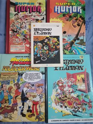 Mortadelo y Filemón. Los dos antiguos están en mal estado, los demás nuevos o casi nuevos. Super Humor antiguo (x2, mal estado): 2 € c/u Biblioteca El Mundo: 3 € Elecciones 2015: 6 € Salvat coleccionista: 8 € Lote completo: 17€