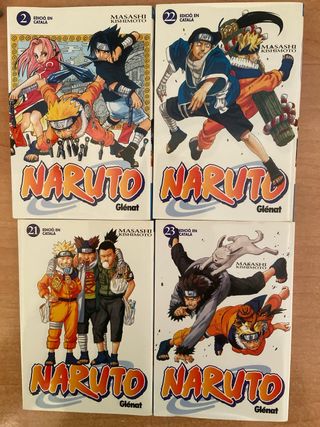 Distintos títulos de mangas: Naruto nº2-21-22-23 (ed. catalán) Keroro nº1 (ed. castellano) Bleach nº8 (ed. catalán) Love Hina nº1 (ed. catalán) Precio individual de cada manga: 4€