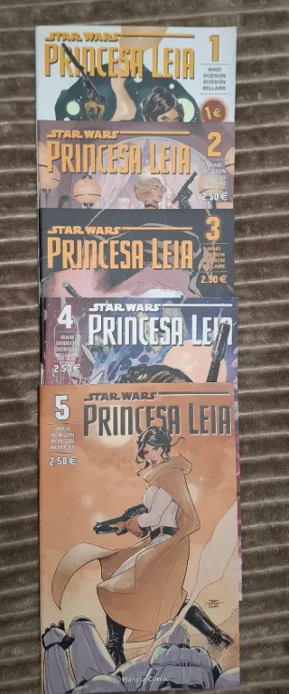 Colección completa de Princesa Leia, números 1 al 5, editados por Planeta Cómic en formato grapa. Miniserie de Star Wars centrada en la Primcesa Leia Organa, imprescindible para fans de la saga. Cómics en muy buen estado, bien conservados. Se vende el lote completo, no se separan números. Ideal para coleccionistas de Star Wars o para completar serie. En mi perfil más productos de Star Wars y otros comic. Hago combos con más productos del perfil. Envio o entrega en mano en Granada PVP: 11€