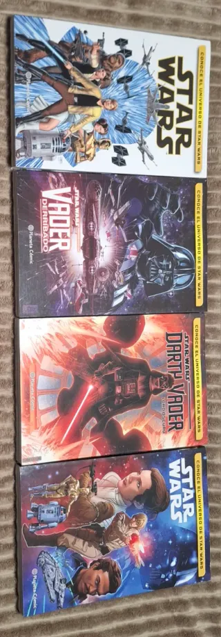 Vendo los 8 primeros tomos de la primera colección moderna de Star Wars de Planeta. Son los 5 primeros de Star Wars, más los 2 primeros de Darth Vader más el cruce Vader Derribado. Están en muy buen estado.