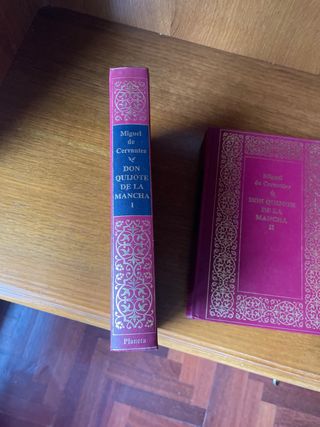 Obra cumbre de la literatura española y universal, narra las aventuras del ingenioso hidalgo Don Quijote y de su fiel escudero, Sancho Panza. Combina humor, idealismo y critica social, destacándose por su profundidad, originalidad y atemporalidad. Imprescindible para todo amante de buena literatura. Edición en tapa dura, en 2 tomos. Como nuevo. Lote 7€50. Entrega en mano o envío por wallapop. Cualquier duda preguntar sin compromiso.