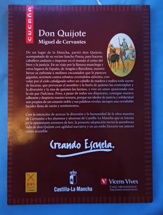El Quijote adaptado. Parte trasera ligeramente dañada, pero el interior del libro está en perfecto estado.