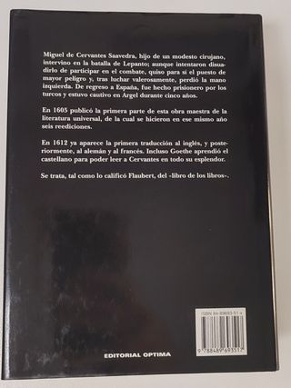 Libro en edición de lujo, NUMERADA PARA COLECCIONISTAS, sólo 1.500 ejemplares. Tamaño 21 x 31 cm, encuadernado con tapa dura forrada en tela. 250 páginas a todo color, cada una de ellas recoge una obra de arte y una cita literaria referida a nuestro personaje más universal: Don Quijote. Bastante raro de encontrar prácticamente sin estrenar. Un regalo excepcional para entendidos !!