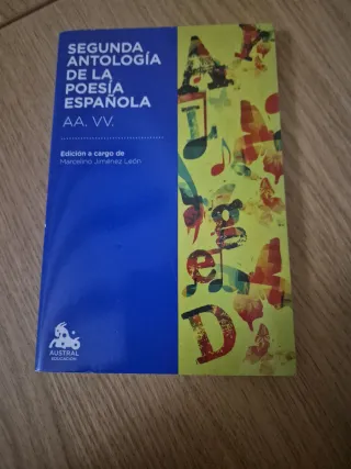 Libro: Antología de poesía española (Varios autores) Editorial: Cátedra Colección: Cátedra Base, n.º 28 Ideal para estudiantes de Secundaria, Bachillerato o amantes de la literatura. Esta antología es una de las más completas y didácticas del mercado. Contenido: Recorrido desde la Edad Media hasta finales del siglo XX. Facilidades: Los poemas medievales incluyen una versión en prosa al lado para facilitar la comprensión sin perder el ritmo. Material extra: Cada autor cuenta con una breve introducción biográfica y cada poema tiene un pequeño comentario que ayuda a situarlo en su contexto histórico y literario. Estado: En buen e