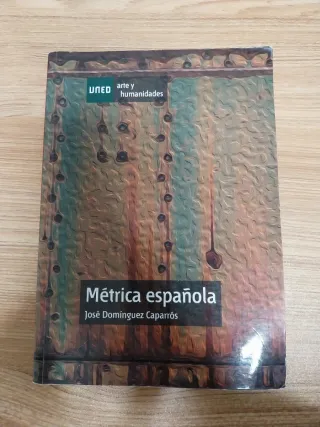 Lote libros de la asignatura ESTILÍSTICA Y MÉTRICA, del Grado en Lengua y Literatura Españolas de la UNED: - MÉTRICA ESPAÑOLA, de José Domínguez Caparrós. Portada algo doblada, algunos subrayados a color y a lápiz en parte del libro. - ANÁLISIS MÉTRICO Y COMENTARIO ESTILÍSTICO DE TEXTOS LITERARIOS, de José Domínguez Caparrós. Subrayados a color y anotaciones a lápiz en la mayor parte del manual, principalmente en la exposición teórica de los temas. De regalo (0 euros): GRAMÁTICA ESPAÑOLA (RAE), a cargo de Emilio Alarcos Llorach
