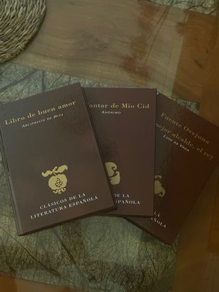 conjunto de 3 libros clásicos de la literatura Española en perfecto estado. - Lope de Vega: Fuente Ovejuna, el mejor alcalde, el Rey. - Arcipreste de Hita: Libro de buen amor . - Anónimo: El cantar de Mío Cid.
