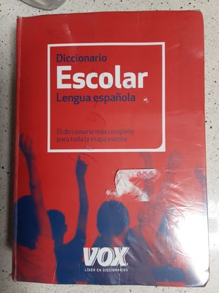 Diccionario escolar de lengua española en buen estado totalmente forrado algunos daños exteriores que no afecta a su uso.