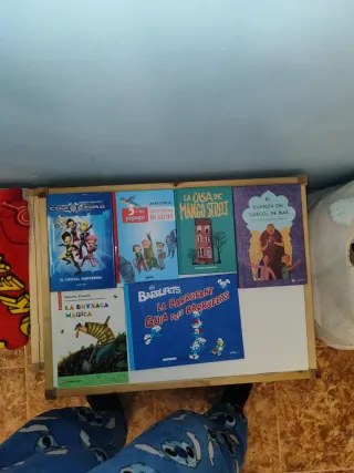 varios títulos de la colección "El mundo de Rita" de Mikel Valverde, como La Rita al Pol y La Rita té xicot. Otros libros visibles son: Fantasmátic de Estrella Ramon. Un fantasma fet a mida de Christine Nöstlinger. Caballero o caballera, lo sabrás a la primera de Enric Lluch. ¡No es tan fácil ser niño! de Pilar Lozano Carballo. Jon y la máquina del miedo de Roberto Santiago. Geronimo Stilton: El lladre de llibres de Helena Tornero. Ui, quina por! de Ricardo Alcántara.