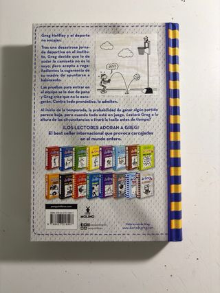 Diario de Greg 1. Es un poco antiguo y se le puede notar un poco pero nada que dificulte la lectura. Tiene un defecto en la portada y es que esta pintado con tempera por que el papel azul se arranco al quitarle el forro. Si compras el 1 y el 2 juntos te los puedes por solo 17€