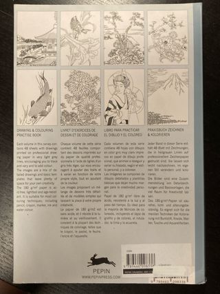 El pack incluye el cuaderno “Japan: Drawing & Colouring Practise Book”, con 48 dibujos para colorear en un papel de buen gramaje (180 gr) y un cuaderno de pequeño formato llamado “Japanese inspirations: Pocket colouring book” con 20 imágenes japonesas, también de buen gramaje. Ambos cuadernos están por estrenar.