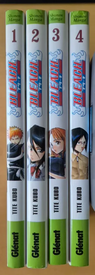 Manga en español Bleach, colección del 1 al 4. Editorial española Glénat En perfecto estado, tal como se ven en las fotos. Solamente una pequeña arruga en el lomo de uno. Se han leído una única vez. SOLO ENVÍOS