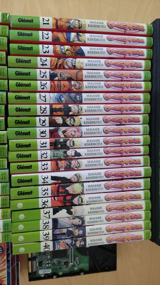 Mangas de Naruto desde el volumen 1 al 5. Algunos volúmenes tiene algunas señas de uso en la parte superior de la carcasa. Están como nuevos por dentro, de hecho algunos están sin estrenar i conservan la etiqueta del precio de la librería.