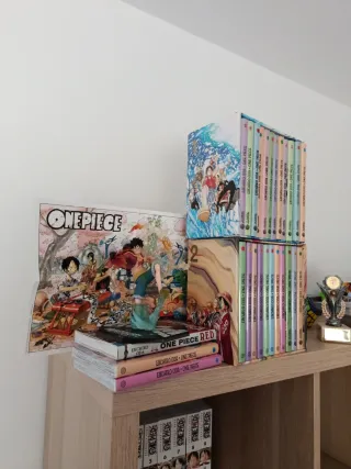 One piece red individual 8€ One piece estampida 7€ One piece red+blue+green+yellow 49€ el pack One piece academia vol 1,4 y 7 15€ los 3 One piece 7 y 88 francés 10€ los dos. One piece ace 10€ One piece 3 en 1 inglés 11€