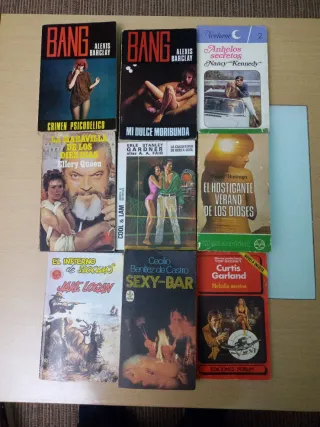 Bang Crimen psicodélico, Mi dulce moribunda, Anhelos Secretos, La maravilla de los diez días, La coquetería de Berta Cool. Erle Santely Garner aliasb A.A. Fair, El hostiganten verano de los dioses, El infierno de slocum's, Sexy Bar , Cecilio Benítez de Castro, Melodía asesina. Curtisn Garland