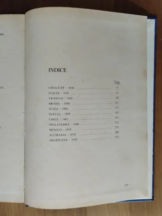 El Mundial de Fútbol y su Historia. Tapas duras con sobrecubierta con ilustraciones en blanco y negro. Historia de los mundiales de fútbol documentada extensamente desde su creación hasta el año 1982. Dimensiones: 17.5 x 24.5cm. Peso: 1 kg