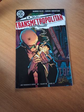 Retapado con los tres primeros números de una colección titulada TRANSMETROPOLITAN NELLA MISCHIA. Edita: Helix. Play Press Publishing. DC cómics. Idioma: Italiano. Año: 1997. Formato: Libro en rústica. 72 páginas en color más cubiertas. 26 x 17 cm. Buen estado, con la fatiga propia del paso del tiempo.