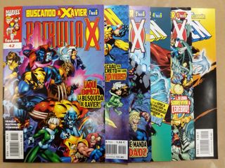 Mini serie Buscando a Xavier de 6 números de los X-Men publicado por Forum en 1999. Comprende los cómics X-Men del 42 al 44 y Patrulla X del 42 al 44. Formato grapa. En buen estado de conservación. Recogida en mano disponible.