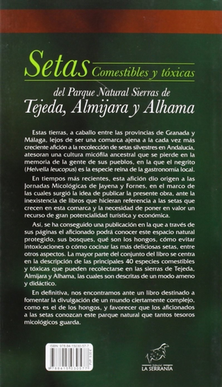 Descubre la guía definitiva de las setas de la Sierra de Tejeda, Almijara y Alhama, escrita por Manuel Becerra Parra y Estrella Robles Domínguez. Ideal para aficionados y expertos en micología.Describe 40 especies comestibles y tóxicas.Formato práctico de 12x21 cm con 96 páginas a color.Incluye consejos para evitar intoxicaciones y recetas.Encudernación rústica con solapas.
