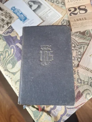 Misal completo de 1958. Está en castellano. Buen estado de conservación. Tapa dura con varios marcapáginas. Tiene 1937 páginas y mide aproximadamente 15x10cm Regalo marcapájinas de tela bordado.