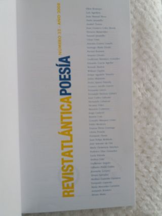 Revista Atlántica. Poesía 32 dedicado a Colombia. Servicio de Publicaciones de la Diputación de Cádiz, 2008, 172 paginas. Tamaño: 30x17 cm. pesa 780 gramos. Rústica con solapas