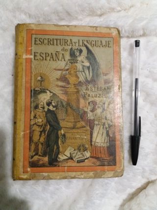 Libro de Esteban Paluzie y Cantalozella, "Escritura y Lenguaje de España" en prosa y verso. 296 paginas. 17x11,5 cm. Obra que contiene sobre 200 caracteres de letra. Nombre de anterior propietario en el interior. El pliego de las primeras 4 páginas suelto, pero fácil de reparar.