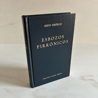 Sexto Empírico: Esbozos pirrónicos (Biblioteca Clásica Gredos, número 179). Primera edición. Descatalogado Editorial: Gredos Traducción: Antonio Gallego Cao y Teresa Muñoz Diego Formato: Cartoné Dimensiones: 19,5 x 12,5 cm. Peso: 363 gramos Número de páginas: 350 Fecha de publicación: 1993. Primera edición. Descatalogado ISBN: 9788424916138 Estado: Tapas: Bien (pero con la esquina inferior derecha de la portada ligeramente despegada y con leves rozaduras en la parte superior del lomo). / Cortes: Muy bien. / Interior: Muy bien (sin sellos, marcas, anotaciones ni subrayados).