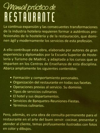 [Estado. Como Nuevo]. Título: Manual Práctico Para Restaurante. Profusamente ilustrado. Autor: Jesús Felipe Gallego. Edita: Ediciones Paraninfo 2014. Isbn 9788428325127. Encuadernación: Rústica ilustrada. Formato: 21.50 x 16.00 cms. Páginas: 407. F3034.