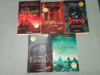 Los libros están tal cual se ven en las fotos. -El enigma Vivaldi -El circulo octogonus -La conspiración del templo -La serpiente roja -Dracula El precio es por unidad, si te llevas todos los dejo en 15€