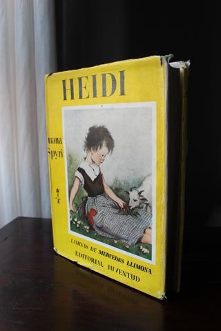 «Heidi» Juana (Johanna) Spyri (1827-1901) Editorial Juventud, Primera Edición de Lujo, 1954. 207 páginas, ilustraciones a color fuera de texto de Mercedes Llimona y otras en blanco y negro en el texto. 25,5 x 20 x 3 cm - 900 g (aproximadamente). Idioma: castellano. Tapa dura en tela editorial verde e impresiones doradas; conserva la sobrecubierta. Taras: sobrecubierta algo deslucida, topos de humedad en el papel cebolla que protege las ilustraciones en color, por lo demás en muy buen estado (ver fotos). Instagram: @lagatacuriosacolecciona