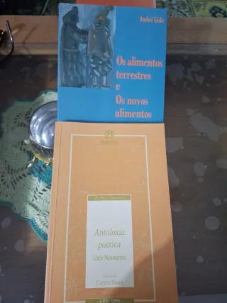 Lote de 2 libros escritos en gallego. 1er libro (Antoloxia poética). En muy buen estado. Y 2do libro (Os alimentos terrestres e os novos alimentos) trata sobre la reivindicación de la independencia personal. Tiene un pequeño roto en el lomo donde estaba pegada la etiqueta de la biblioteca, en buen estado. Son libros descatalogados de biblioteca