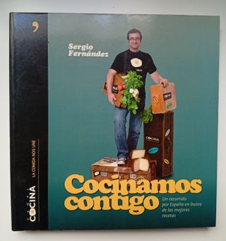 Libro descatalogado "Cocinamos Contigo" de Sergio Fernández en buen estado. Señales de uso en portada y contraportada.