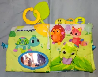 Libro para bebés +3 meses. Suave cuento de tela para descubrir la naturaleza y los animales. Un viaje por el bosque de la mano de simpáticos amiguitos. TEXTURAS VARIADAS: Estimula el sentido del tacto: cintas de raso, láminas crujientes, espejo de seguridad, peluche, mordedor de silicona.
