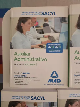 Acceso a personal estatuario fijo en categoría Auxiliar Administrativo del Servicio de Salud de Castilla y León. - Temario volúmenes 1, 2 y 3 - Test - Simulacros de exámenes