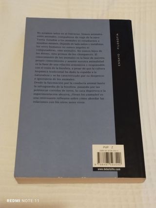 No estamos solos en el Universo. Somos animales entre animales, compañeros de viaje de la nave Tierra. Estudiar a los animales es estudiarnos a nosotros mismos. Dejando de lado mitos y metáforas, los seres humanos no somos ángeles ni computadoras, sino animales. No somos hijos de los dioses, sino primos de los chimpancés. El conocimiento de los animales es la base de núestro propio conocimiento y asumir nuestra animalidad es la base de una relación armoniosa y responsable con el resto de la biosfera. No hago envios. Entrego en Barcelona Paseo Fabra y Puig esquina con Avda. Meridiana.