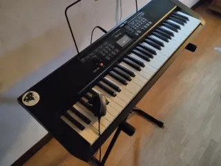 Teclado musical con soporte y adaptador para auriculares. Genial para aficionados o principiantes. Tiene una pegatina en la esquina (ver foto) que se puede quitar y el plástico que recubre la pantalla está para quitarlo (aunque yo preferiría dejarlo para proteger la pantalla)