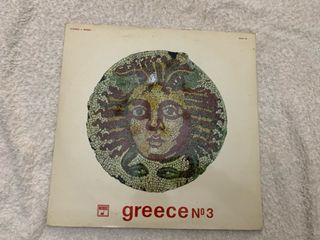 Disco de vinilo con música de Grecia, volumen número 3. Presenta una portada con un mosaico de una cara. - Formato: Vinilo. - Género: Música del Mundo.