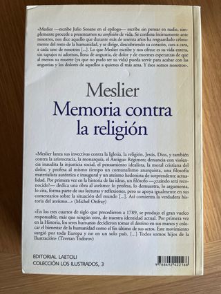 Libro de Jean Meslier. - Título: Memoria contra la religión. - Ilustración de portada. - Publicado por Laetoli.